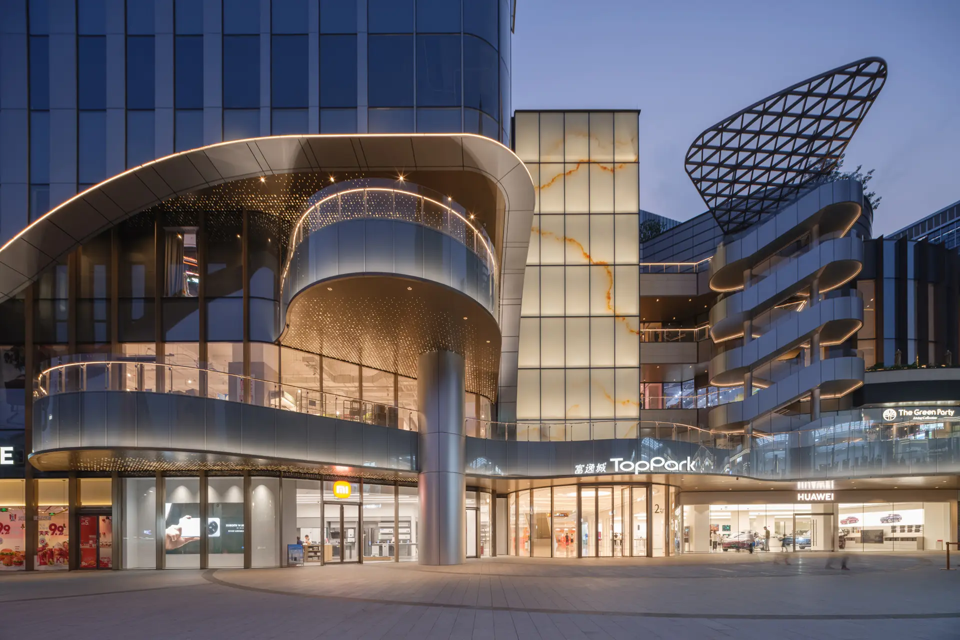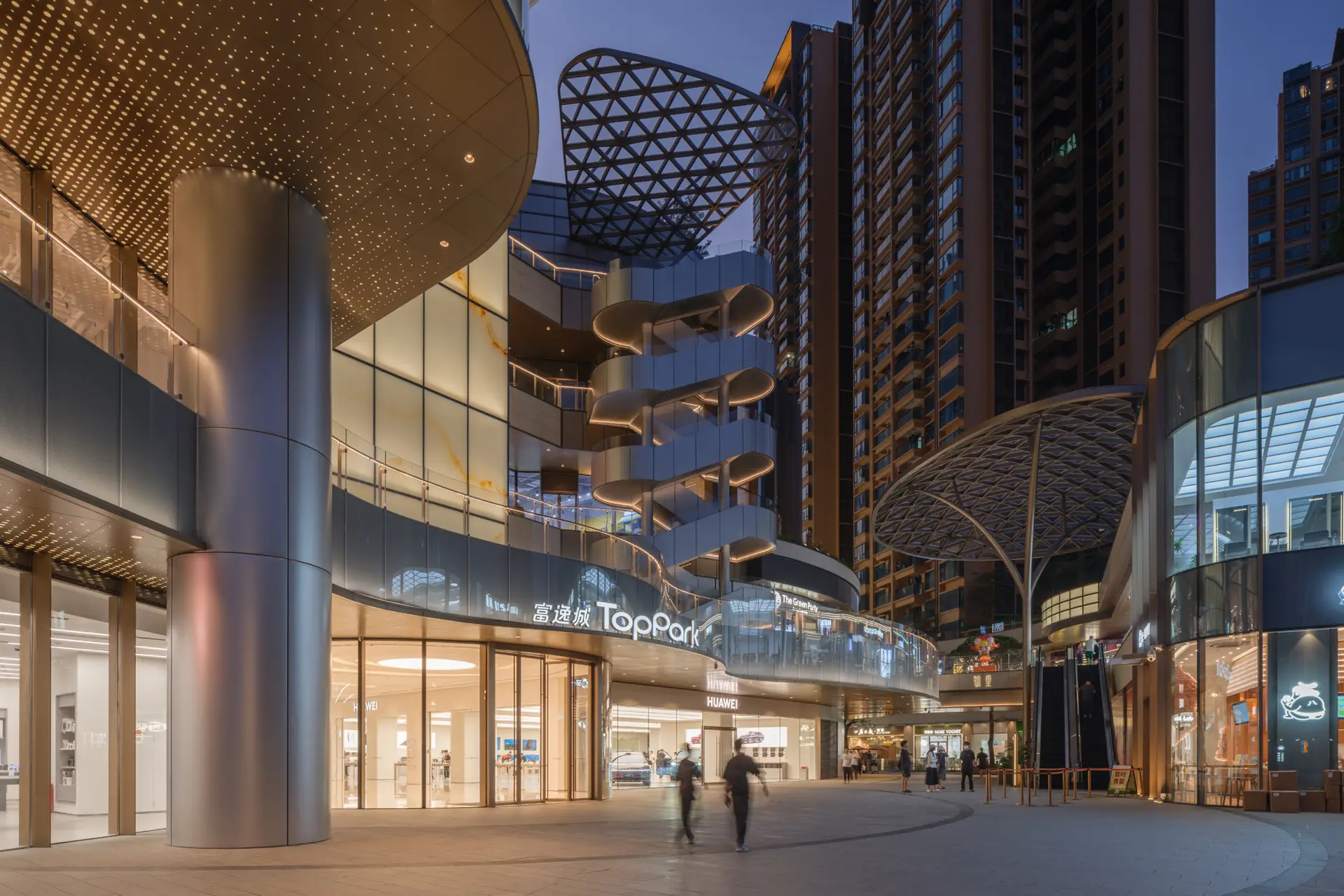 中山富逸城TopPark,是富逸集团斥资打造的智慧生活创新集聚区,不仅汇集了大型MALL、活力街区和空中乐园,还成为中山现代城市的地标之一。我们作为灯光顾问团队,承担了项目的建筑泛光、景观灯光、室内灯光、塔楼灯光以及裙房入口裸眼3D屏幕的媒体立面设计工作。秉持对创意与细节的执着追求,我们在设计中融入山水景观的独特灵感,使富逸城TopPark在夜幕中焕发出如诗如画的光影意境。