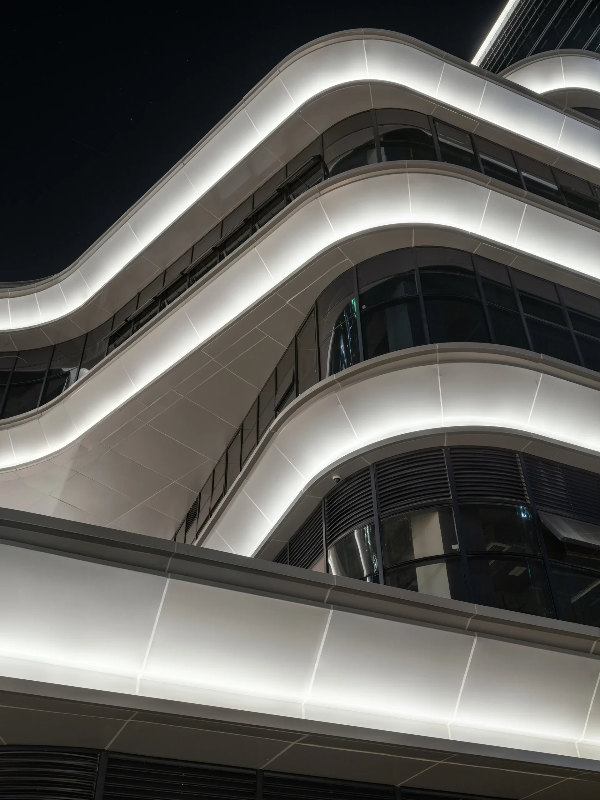 The overall architecture of Yuanchuang Park embodies the temperament of “modern, generous, professional, and exquisite”. The architectural style introduces the image elements of Hangzhou tea gardens, with four interconnected towers and multi-level overlapping spaces, a ring style independent inner courtyard, and a central super large landscape garden. The park aims to create a new generation of innovative business ecosystem, creating an exquisite space where Hangzhou’s local Jiangnan regional characteristics intersect with Singapore’s garden city landscape. The TS team circulates continuous light around the edges of the building in the lighting, creating a technologically dynamic beauty of the park.