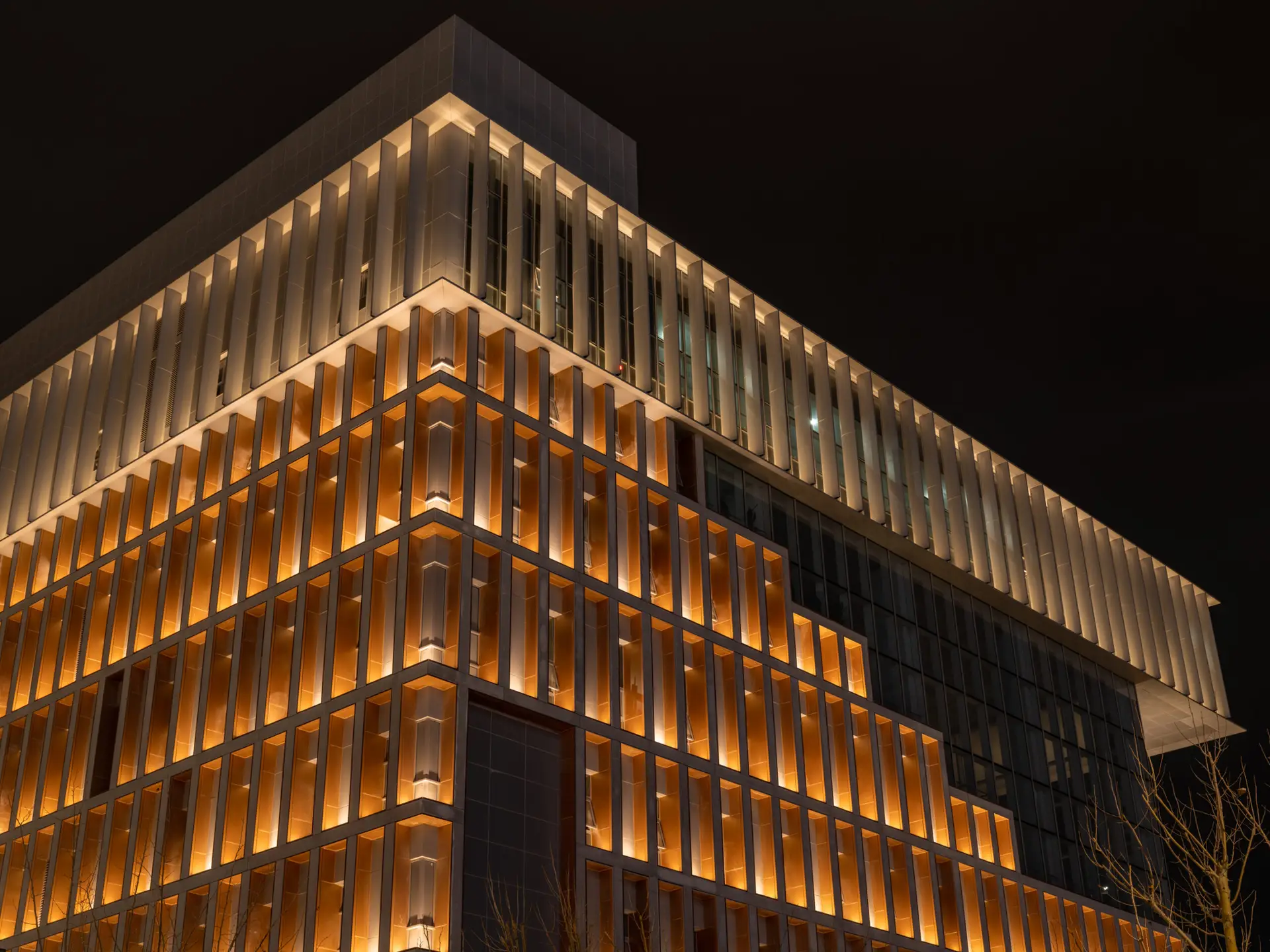 As of October 2020, the built-up area of Lingang New Area is 63 square kilometers. Before the establishment of the pilot free trade zone in the Lingang area, TS Ruosi Lighting began to participate in the construction of the Port City Square. After nearly 6 years, TS was responsible for the lighting design of the Port City Square project, phases one, two, and three, which have been completed. During this period, the TS team was also responsible for the overall lighting planning of the Dishui Lake Vitality Block. The area of the completed project with lights on is so large that it can be said to be the largest single project completed in the Lingang New Area. The total construction area of Gangcheng Square is 560000 square meters, consisting of 8 plots of land to form a complete block complex Mr. Zhong Ming, the chief designer of TS, said, “In the current top-level large-scale park building complex, how to use light at night to highlight the culture of the enterprise, the openness of the area, and the characteristics of the project, as well as how to integrate the block, commercial, office, and public landscape land and release vitality, is the most crucial。”