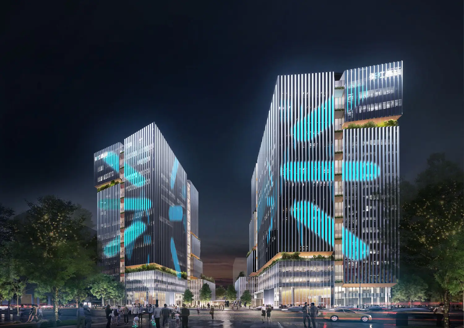 The lighting design of Zhangjiang 5-1 office building is based on the core concept of “Gateway of Light, Coexistence and Gathering, Leading the Future”, fully demonstrating Zhangjiang’s corporate culture and innovative spirit. The overall lighting environment is not only functional lighting, but also a spiritual symbol, like opening a door to the future of light for the park. Building 3 is like the heart of the park – a transparent and crystal clear “heart of light”, whose light and shadow seem to breathe and beat in the night, injecting a continuous stream of vitality into the entire park. Through the rhythm and changes in brightness and darkness of the lighting, it reflects the thriving vitality and open and inclusive attitude of Zhangjiang. The core of Zhangjiang, the core of energy, not only symbolizes the convergence of technology and wisdom, but also leads the park towards higher goals with the power of light, becoming an important symbol for showcasing the regional image and spiritual connotation.